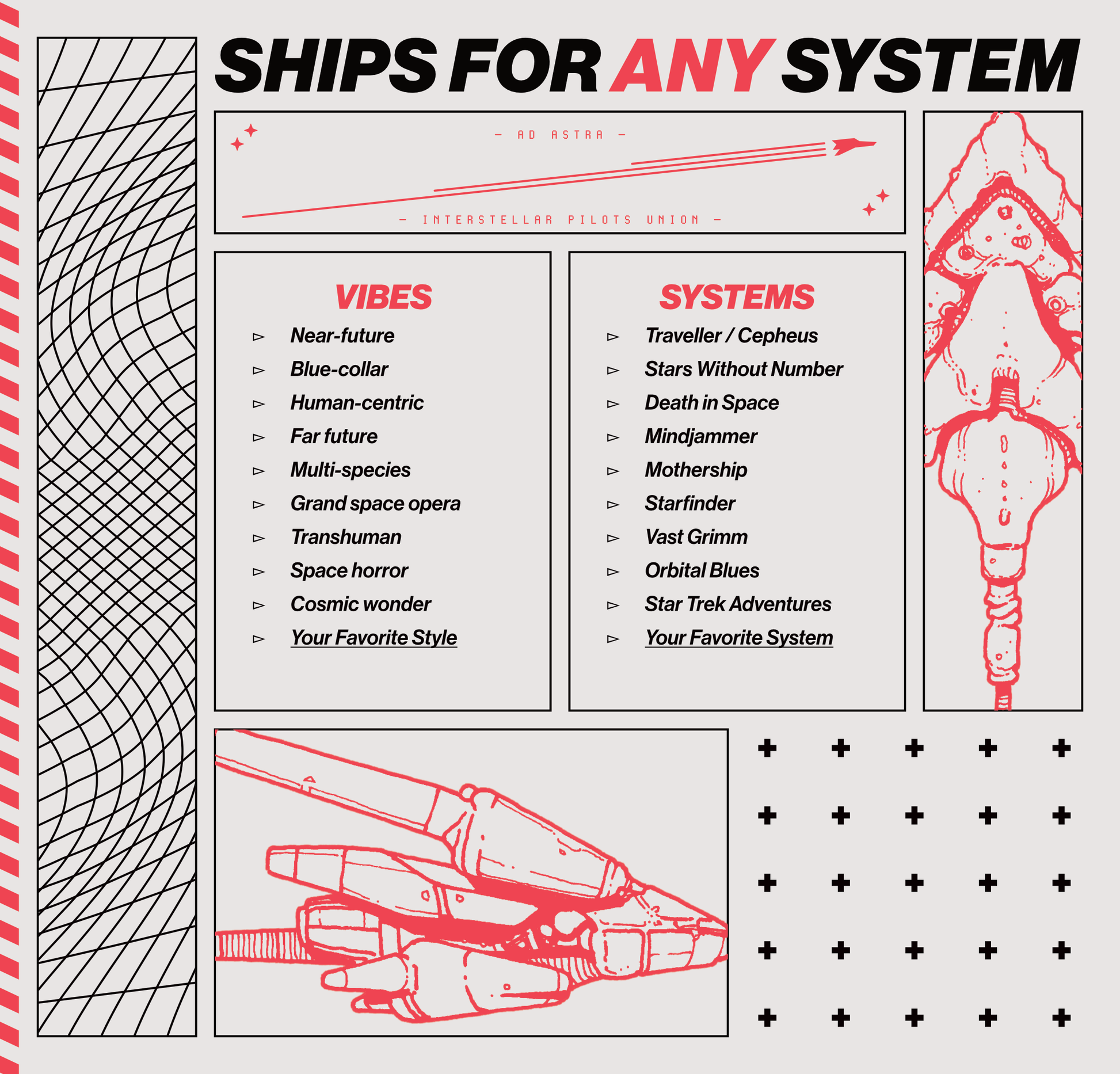 With over 150 pages of tables and generators, and cards capable of creating 393 Million possible spaceships, the limit does not exist.